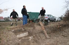 Charles, Andreas und Uwe als Treppenbauer am See unterwegs